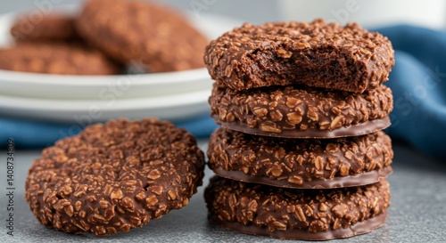 Indulgent stack of chocolate oatmeal cookies, a dessert delight tempting with its rich color