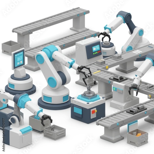 Industrial Automation with Robotic Arms in a Modern Factory Setting