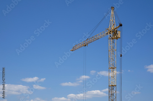 Industrial construction building crane against blue cloudy sky