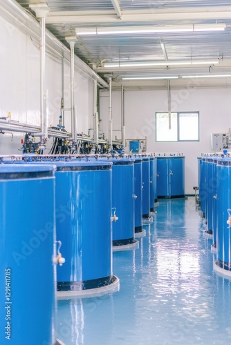 Industrial equipment manufacturing process factory photography cleanroom environment wide angle view precision engineering