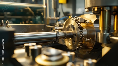 Industrial machine with rotating metal gears and heavy-duty controls, emphasizing precision engineering