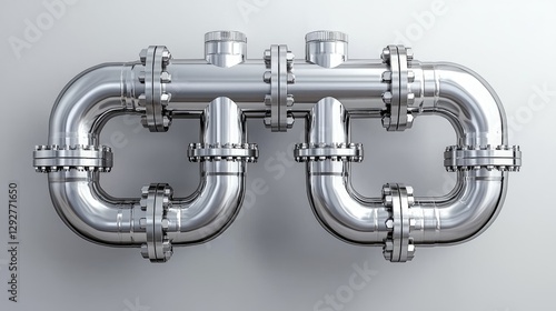 Industrial Piping System on Gray Background
