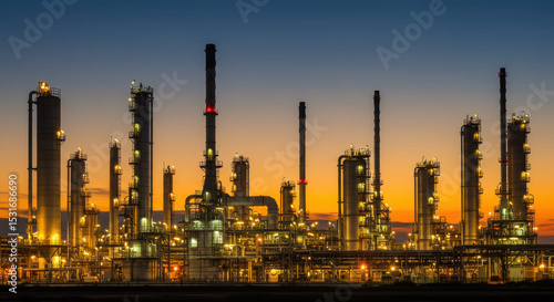 Industrial Refinery at Sunset Panorama of Oil and Gas Processing Plant