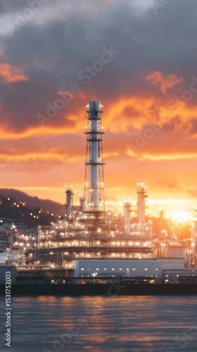 Industrial Sunset Ammonia Plant Refinery Chemical Production Dusk