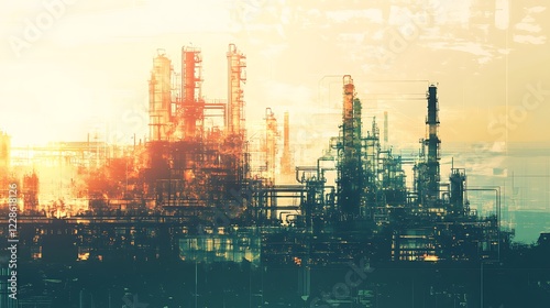 Industrial Sunset: A Refinery's Silhouette at Dawn