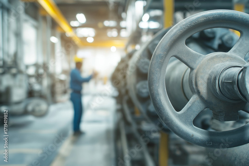 Industrial Valve and Worker in Factory