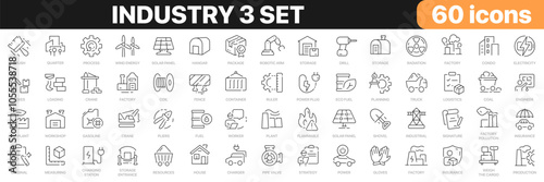 Industry 3 set line icons collection. Construction, manufacture, factory, energy, logistics, tools icons. UI icon set. Thin outline icons pack. Vector illustration EPS10