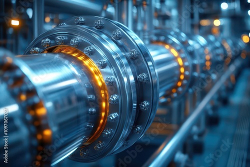 industry pipeline transporting petrochemicals, showcasing intricate steel pipes and equipment in a high-tech manufacturing environment, emphasizing efficiency and modern engineering