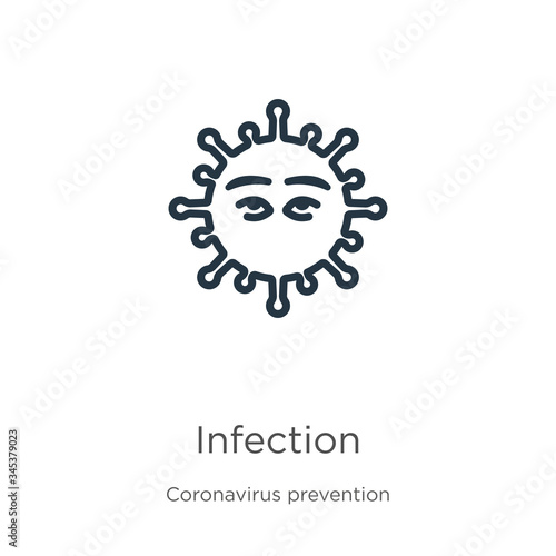 Infection icon. Thin linear infection outline icon isolated on white background from Coronavirus Prevention collection. Modern line vector sign, symbol, stroke for web and mobile