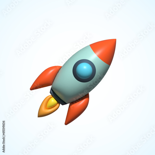 Inflated 3D Vector Retro Futuristic Rocket Launch Illustration. Abstract Spacecraft Logo Template Isolated