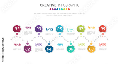 Infographic design template with 9 options, Can be used for process diagram, presentations, workflow layout, banner, flow chart, info graph.