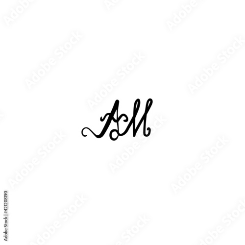 Initial AM handwritten monogram and elegant logo design