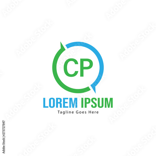 Initial CP logo template with modern frame. Minimalist CP letter logo vector illustration