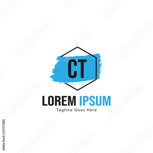 Initial CT logo template with modern frame. Minimalist CT letter logo vector illustration