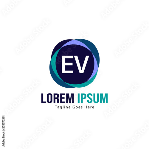 Initial EV logo template with modern frame. Minimalist EV letter logo vector illustration