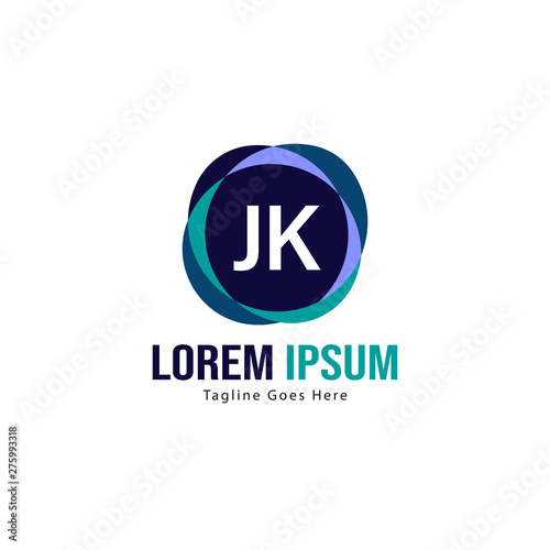 Initial JK logo template with modern frame. Minimalist JK letter logo vector illustration