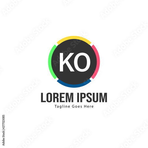 Initial KO logo template with modern frame. Minimalist KO letter logo vector illustration