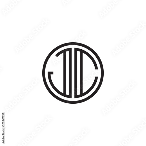 Initial letter JC, minimalist line art monogram circle shape logo, black color