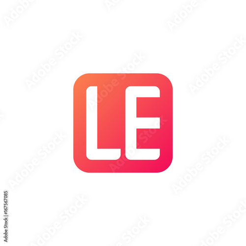 Initial letter LE, rounded letter square logo, modern gradient red color