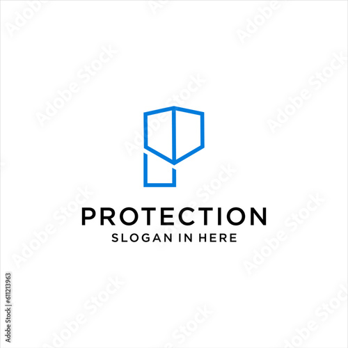 initial letter P logo design with protection shield icon vector template
