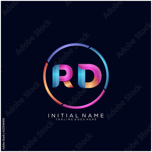 Initial letter RD curve rounded logo, gradient vibrant colorful glossy colors on black background