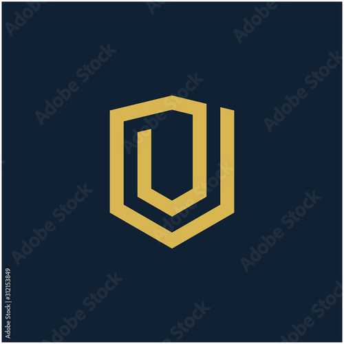 initial Letter V with Shield frame line art element. Shield Line geometry for Security logo. Logo Icon Template for Web and Business Card, Letter Logo Template on Black Background. - vector