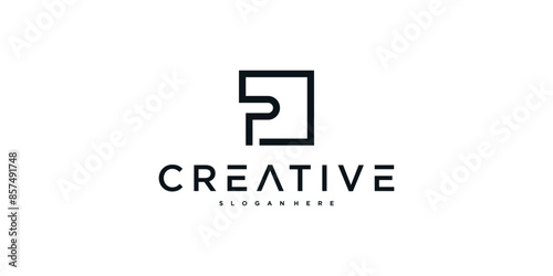 Initial P letter logo design with square lines. Premium Vector