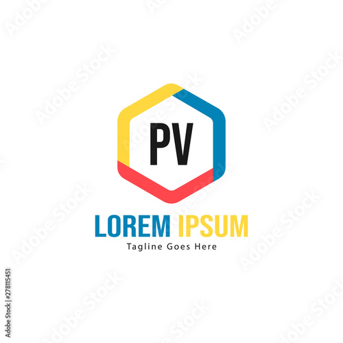 Initial PV logo template with modern frame. Minimalist PV letter logo vector illustration