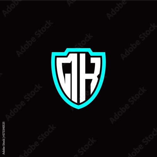 Initial Q K letter with shield modern style logo template vector