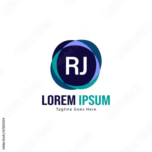 Initial RJ logo template with modern frame. Minimalist RJ letter logo vector illustration