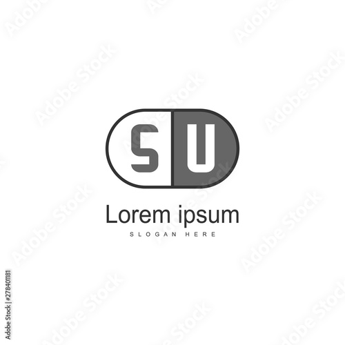 Initial SU logo template with modern frame. Minimalist SU letter logo vector illustration
