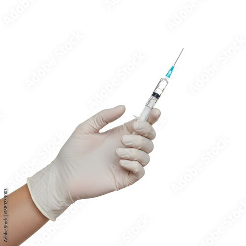 Injection with Sterile Syringe in Gloved Hand on Transparent Background