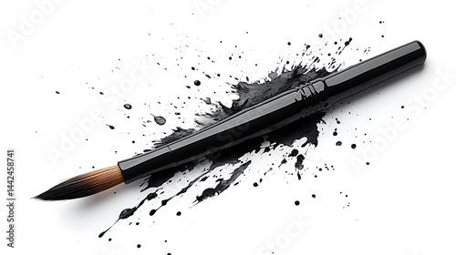 Ink brush explosion on white backdrop