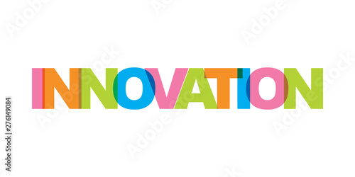 Innovation business card text. Modern lettering poster. Color word art slogan icon. Phrases vector print design elements.
