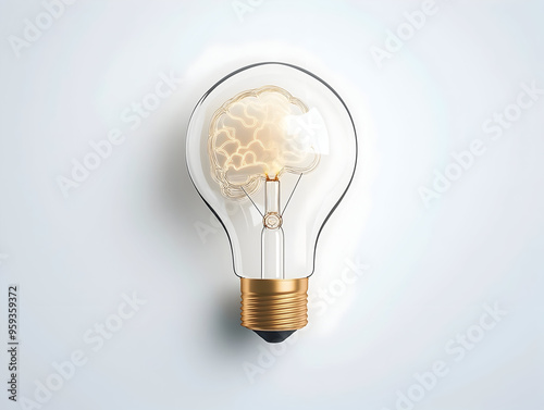 Innovation Concept: Light Bulb with Brain Symbolizing Creative Thinking and Ideas