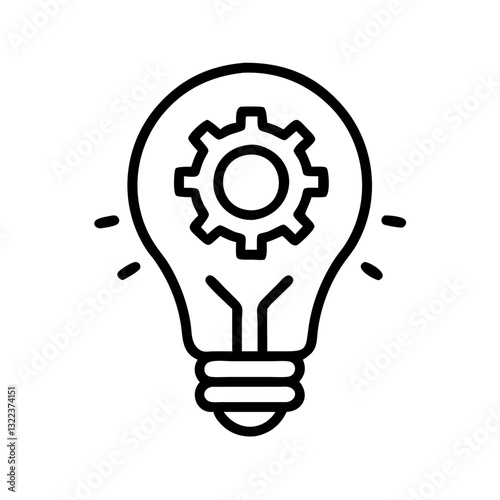 innovation lightbulb icon with gear and sparks in a simple line art style on white background
