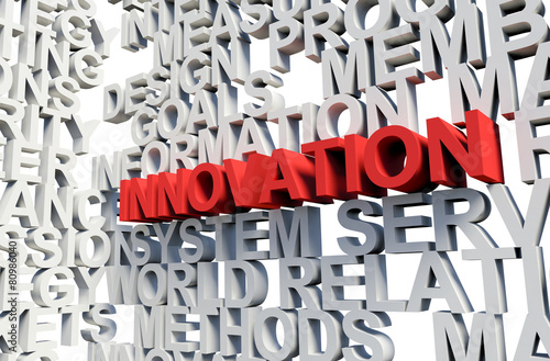 INNOVATION Word in red, 3d illustration.
