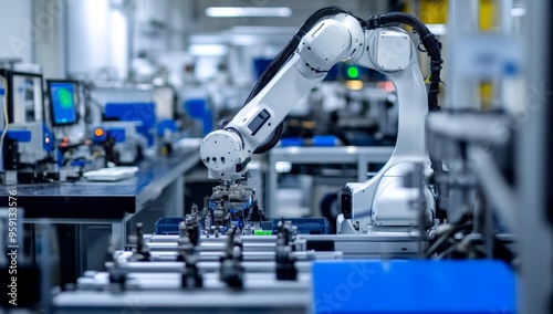 Innovative robotic arm enhancing industrial automation in modern factory setting