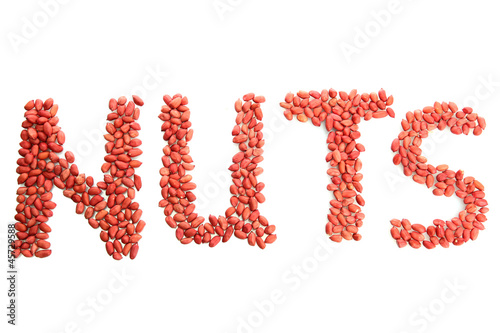 Inscription Nuts of peanuts, isolated on white