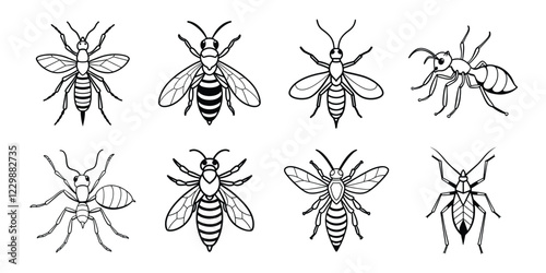 Insects liner art set. Vector illustrations poisonous insects isolated on white background