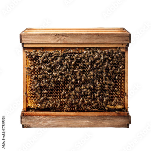 Inside a Busy Beehive: Nature's Sweet Workers on white background