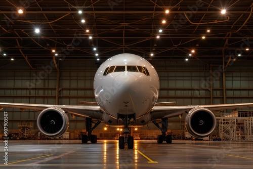 Inside Aircraft Hangar: Commercial Plane Receiving Service