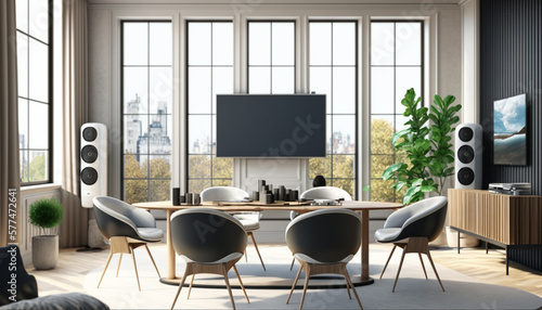 Inside of a Large Modern Living Room, Decorated with Green Indoor plants , Interiors and Furnitures, Screen | Generative Art