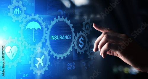 Insurance, health family car money travel Insurtech concept on virtual screen.