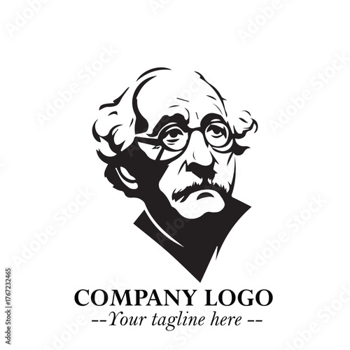 Intelligent Head of Professor Logo Symbol in Black on White Background with Modern Minimalist Design