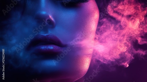 Intense Close-Up of Woman's Face with Colorful Smoke Effects
