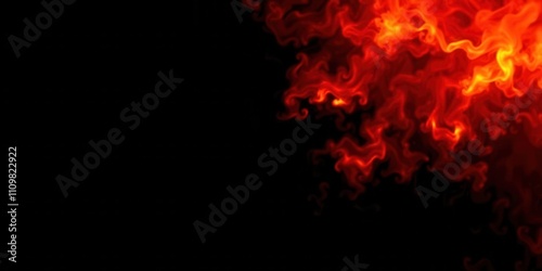 Intense fiery flames dancing against a dark black background, glow, red