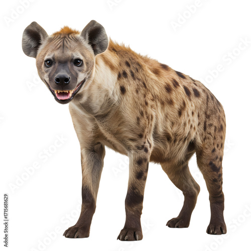 Intense hyena with bared teeth and alert eyes, a captivating wild predator ready for action