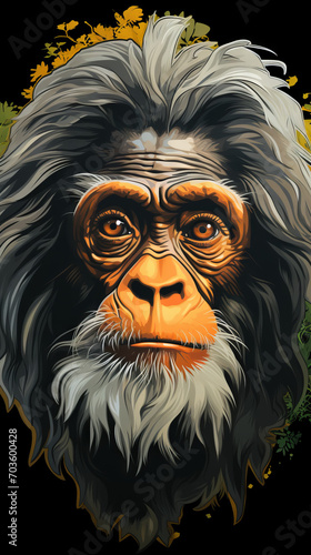 Intense Portrait of a Chimpanzee with Vivid Orange Eyes