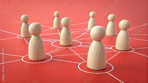 Interconnected Connections: Wooden figures linked together by lines, symbolizing unity and collaboration, create a visually striking representation of networking.